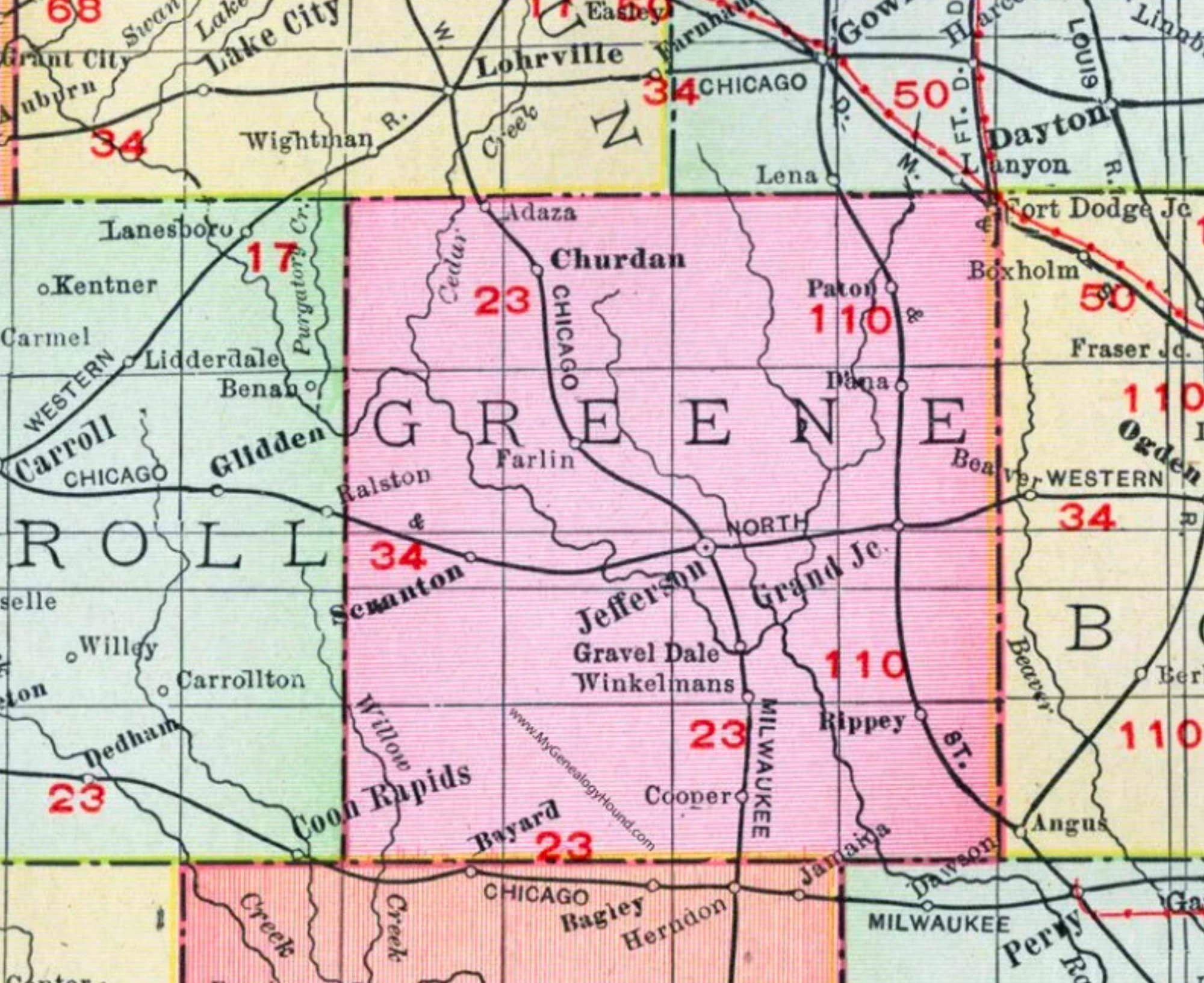 Towns: Jefferson (county seat), Churdan, Grand Junction, Paton, Rippey, Scranton
